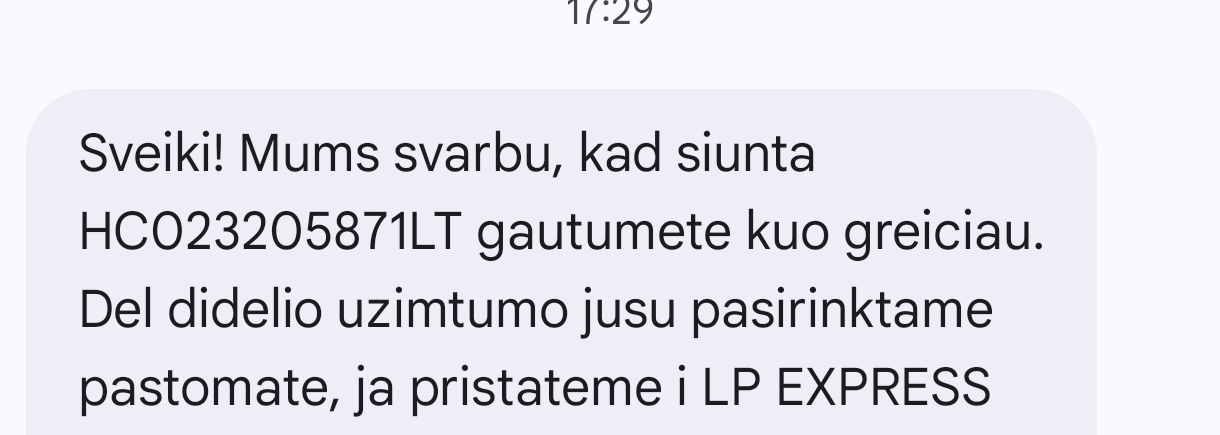 Nukreipiau siunta į paštomana gavau patvirtinančia sms. Vistiek nukeliavo į kita rajona. Skambinu, sako dar net negavom gausim nujreipsim, kaip suprast?