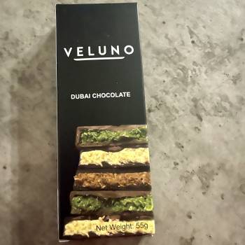 Jokiais būdais nepirkite šokolado “VELUNO”. (Dubai chocolate). Visiškas š… tik paragavau ir išmečiau iškart. Šokoladas pabalęs, veliasi burnoje… tiesiog šlykštu.